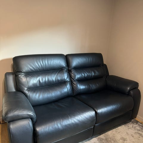 Dette er en vakker Stressless Stella-sofa. Polstret i svart skinn. Ryggstøttene og setene er justerbare. Den kommer fra et røykfritt hjem og er i god stand.