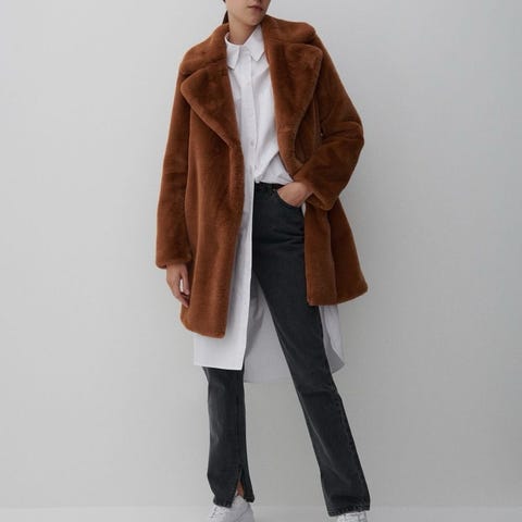 Embrace cozy sophistication with this floor-length Teddy Coat by Aritzia. This double-breasted coat features a wide lapel and a relaxed silhouette, combining luxury and warmth for the ultimate winter staple. Made from Aritzia's signature soft and cuddly teddy fabric, it’s perfect for layering over any outfit.