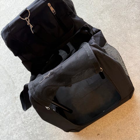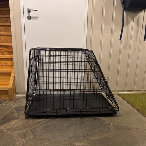 Hundebur selges. Passer til hund 10-15 kg. Har dør som kan åpnes både foran og bak på buret. Kjøpt på XXL. Pute medfølger.