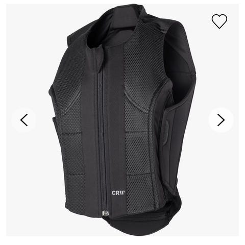 CRW beskyttelsesvest i svart farge. Vesten har polstrede seksjoner for beskyttelse og justerbare stropper for tilpasning. Egnet for bruk ved aktiviteter som krever kroppsbeskyttelse. Str s