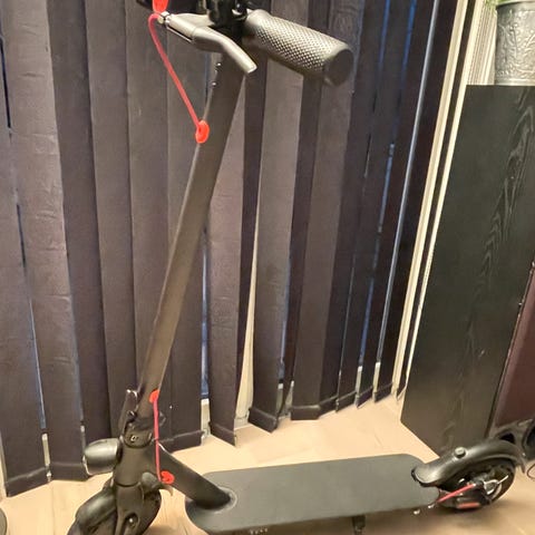 E-Wheels E2S V1 elektrisk sparkesykkel i blå og svart farge. Modellen har sammenleggbar ramme for enkel transport og oppbevaring. Leveres med tilhørende lader med spesifikasjoner: input 100-240V, output 42V 1.5A. Egnet for urban transport og kortere pendling.