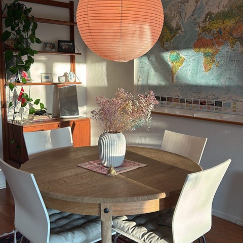 Dette er en harmonisk spisegruppe som passer perfekt i moderne, nordisk eller bohemsk interiør.