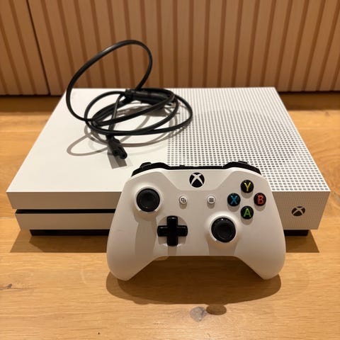 Selger en pent brukt xbox one s, med 1tb harddisk, hdmi kabel, og strømledning. Ingen kontroller. Selges for 850kr. Kan sendes