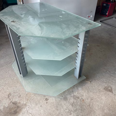 Glassbord med marmorfot gis bort. Integrert ekstra plate, slik at bordet kan bli 245 langt.