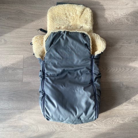 Pent og lite brukt vognpose med saueskinn fra Nøstebarn. Vannavvisende ytterstoff. Vi har hatt dunpose så denne har blitt nedprioritert og selges derfor. Kan ikke se noen spesielle anmerkninger utenom flekk ved hullet til selen. Kan ha svakere flekker i ullet