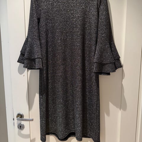 Floyd Festkjole i størrelse M, brun farge, laget av polyester. Kjolen har lange ermer med mansjetter og en omslagsdesign med knyting i siden. Materialet har en lett glitrende effekt som gir teksturen et særpreg.