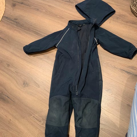Litt synlige bruksmerker på knapper og knær/rumpe. Brukt av ett barn en sesong. Masse god bruk igjen. Begge fotstrikk intakt.
