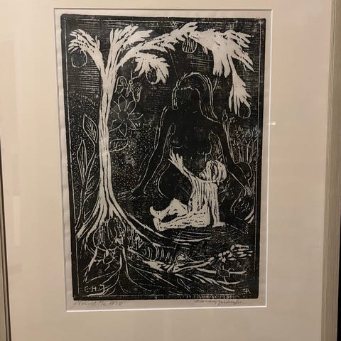"Etter brannen." Et flott tresnitt, 30 x 40 cm.