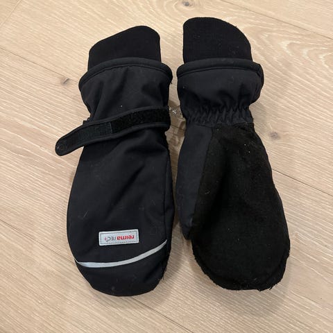 Nesten ubrukte votter, da de var i minste laget og vi kjøpte et større par i tillegg. Dermed minimalt brukt og ser veldig fine ut!