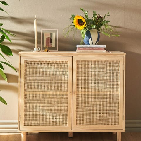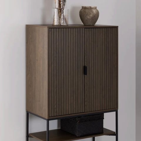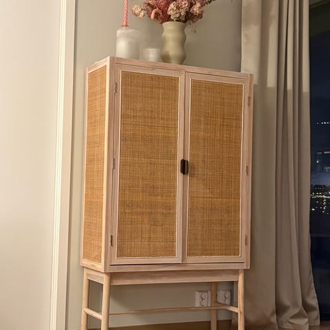 Skap Halmstad fra JYSK i varm eikefarge. Skapet er ferdig montert og har ingen skader eller merker.