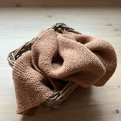 Håndstrikket nytt babyteppe/vognteppe i str 85x85 cm. Teppet er lett, mykt og elastiskt og det er strikket i garnet Fryd fra Gjestdal i fargen teblad. Dette er en dus nydelig grønnfarge. Oppskriften er Mor Signe babyteppe fra Nøstebarn.