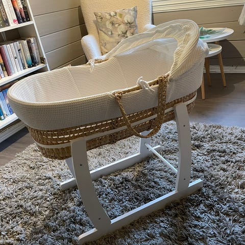 Moseskurv med gyngestativ fra Ahoj Baby selges for 1000kr. Pent brukt.