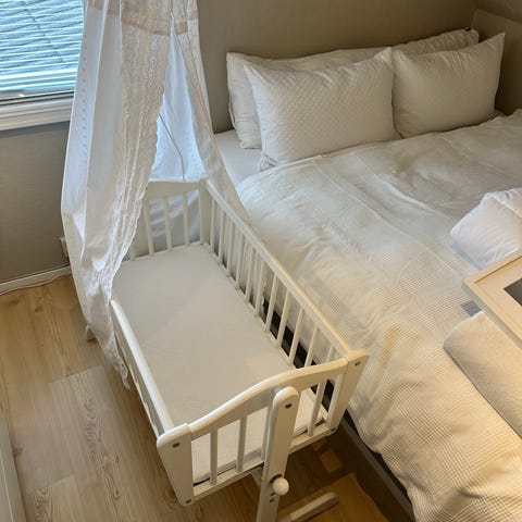 Moseskurv med gyngestativ, madrass, trekk og 5 laken
