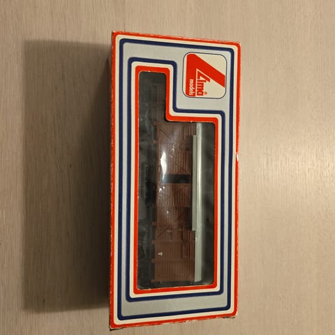 Pent brukt Lima togvogn med containere fra Linjegods. Boks medfølger ikke.