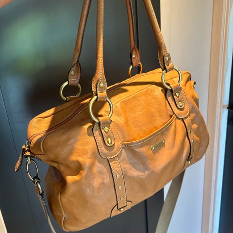 En fin og praktisk stelleveske selges. Mange rom både utvendig og innvendig. Det ligger også stellematte i vesken.