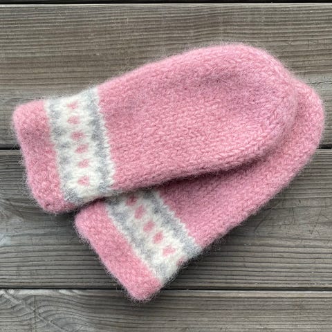 Fine tovede votter til barn, håndstrikket i 100% norsk ull, kvalitetsgarnet Vams fra Rauma.