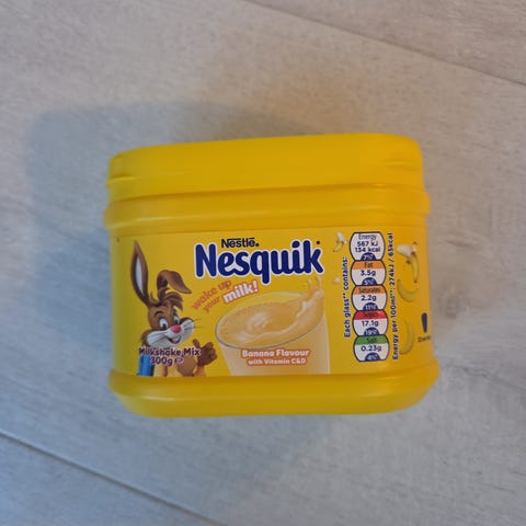 Nesquick jordbærpulver. Kun tatt 30g av den ene posen(01.01.26). Holdbar til juni 2026.