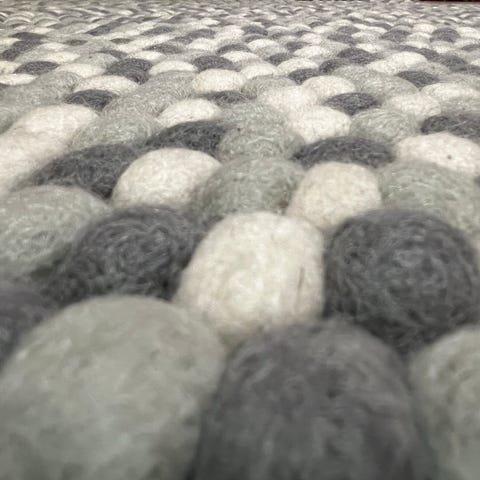 Veldig pent ullkuleteppe 120 cm diameter i antrasitt / mørk grå farge
