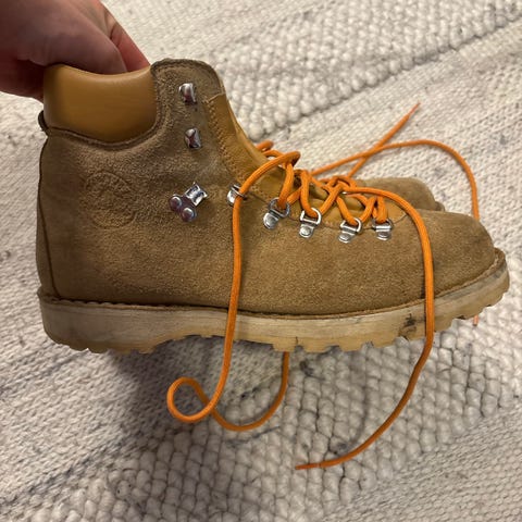 Diemme vintersko i størrelse 45 i grått semsket skinn. Skoene har gule lisser og en robust vibram såle.