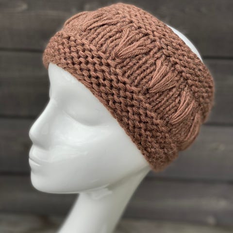 Pannebånd ørevarmer i ull/alpakka, håndstrikket, nytt