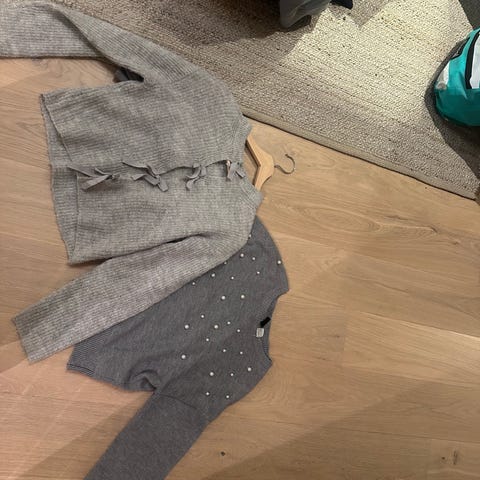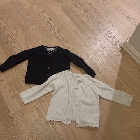 To strikket cardigan i str 92, lite brukt