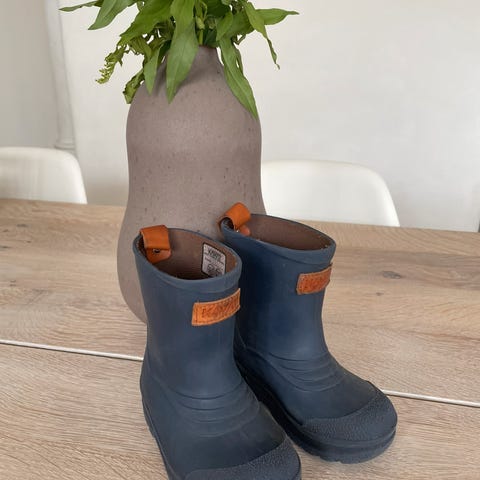 Kavat gummistøvler i gul farge, størrelse 25, designet for barn. Støvlene er unisex og har en slitesterk gummiyttersåle med godt grep. Egnet for bruk i vått og kaldt vær.
