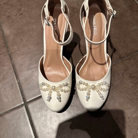 Brudesko fra Anna Field i str. 37 selges da jeg ikke brukte de selv. Valgte et annet par som var litt lavere.