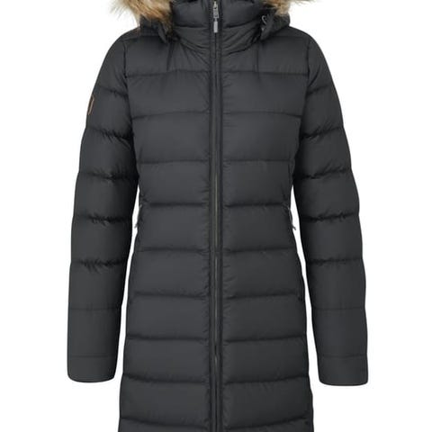 Rab Deep Cover Parka Wmns en varm og stilig dunparkas til dame, som er perfekt når du har behov for å holde varmen på kalde gåturer. Jakken produseres i resirkulerte materialer og har en PFC-fri, resirkulert dunisolering. Dunjakken har dessuten en avtagbar hette med fuskepelskrave (kan tas av), en toveis glidelås med innvendig stormklaff foran, elastiske fleecemansjetter som holder varmen inne og lommer med glidelås.