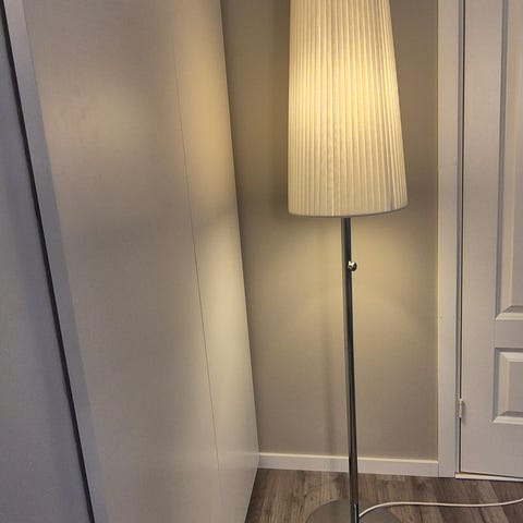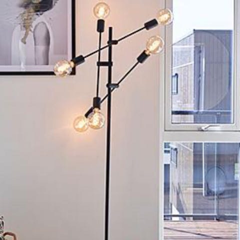 Stålampe i krom med 5 lys og dimmer, høyde 2m. WIZ-pærene kan styres med fjernkontroll og kobles til Wifi.
