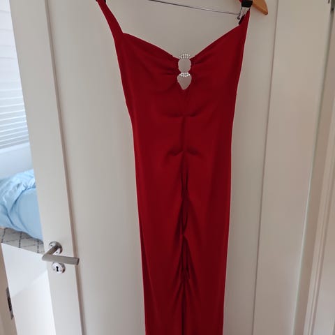 Nydelig rød kjole, selges da den ikke var flatterende på min figur med litt bredere hofter. Selges billig.