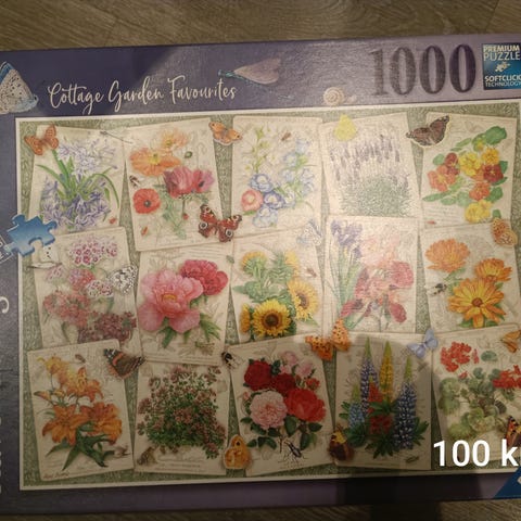 3 pakker med puslespill. I den ene pakken er det 3 ulike puslespill, men på det ene av de mangler to brikker. Ellers er alt komplett.