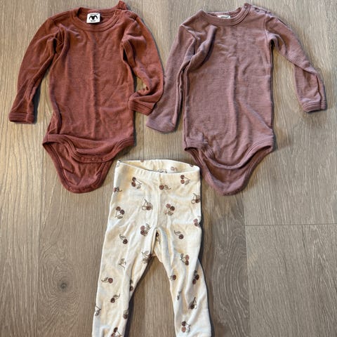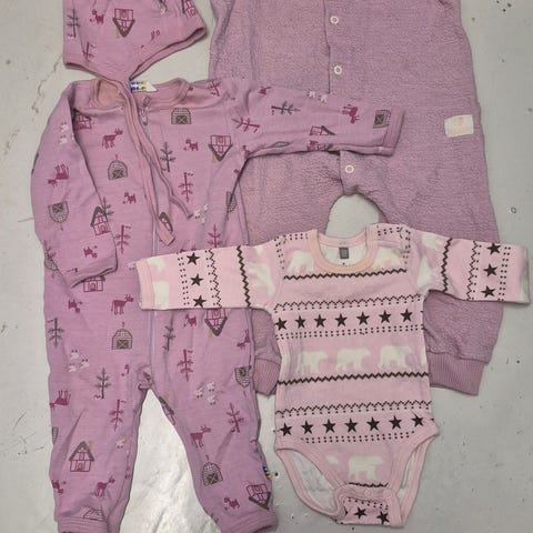Joha ullpakke (ull og bambus), størrelse 70. Ulldrakt/pysjamas, sett med body, tights og hue.