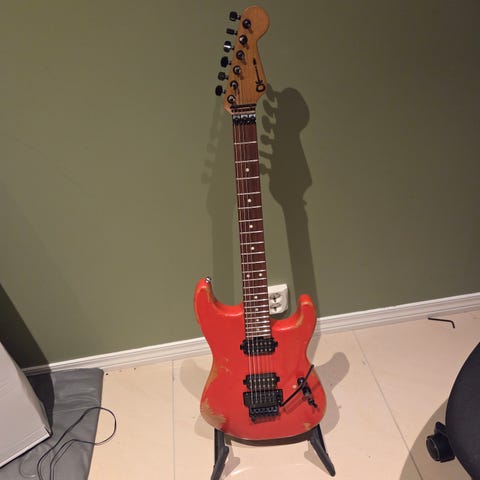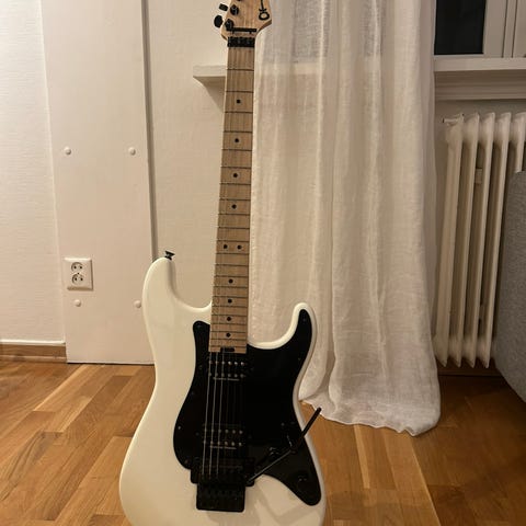 Selger min Charvel Pro Mod DK 24. Dette er en arbeidshest av en gitar, med HSH Seymour Duncan Full Shred pickuper, Gotoh locking tuners og whammy, og baked maple hals. Dette er en allsidig og god gitar, med alle toner du kan tenke deg. Gitaren er minimalt brukt, og har fått installert dunlop straplocks, samt speedknobs for både utseende og at de er bedre enn de knottene den kom med. Kommer med gigbag.
