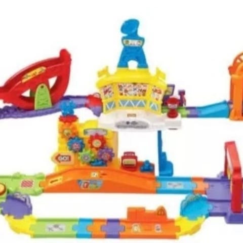 -Interaktivt bilverksted som lyser, spiller av lyder, sanger og fraser. Perfekt for barn fra 1-2 år.