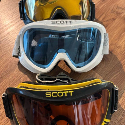 Pent brukte slalåmbriller fra Volcom med to glass, en mørkere og en lysere. De er kjøpt i USA og gitt i gave så ordinær pris er usikker💕 speilbrillene har to merker, mens de rosa er ikke blitt brukt🫶🏼 brillene kan tas av og på lett ved hjelp av magneter😍superfornøyd med disse brillene, men de blir dessverre ikke brukt😕kan sendes!