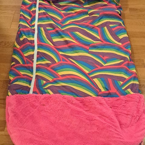 Indendørs vinter sovepose. Soveposen er helt ny og er ikke blevet brugt da det viste sig at vores datter hverken sover med sovepose eller dyne 😂 den er god varm og armene kan lynes af for bedre bevægelse.