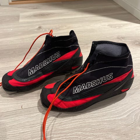 Madshus Hyper C skisko str. 41 selges. De er veldig pent brukt, da han som brukte skoene vokste veldig fort ut av dem.