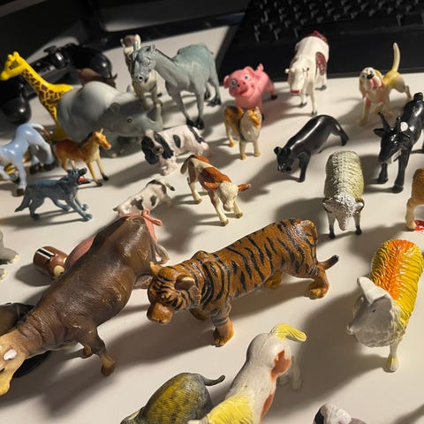 To fine store lekedyr. Knølhvalen er fra Papo, tigeren er jeg litt usikker på men tror den kan være fra dyreparken. Begge figurene er tunge og solide og i god kvalitet. Det vil forekomme noen bruksmerker. Tigeren er ca. 36 cm lang. Prisen er for begge samlet.