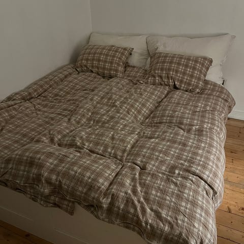 Har alltid vært brukt med overmadrass, så de fremstår pene i trekket. Noe sprukket opp i filten i under sengen, siden det har vært lagret ting under sengen, men dette synes ikke og har ingen betydning for bruken.
