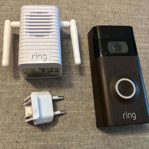 Selger en ny og uåpnet Pro-versjon av Ring Battery Video Doorbell. Dette er modellen over Standard/Plus og har bedre features for bevegelse, birds-eye view og forbedret lyd.