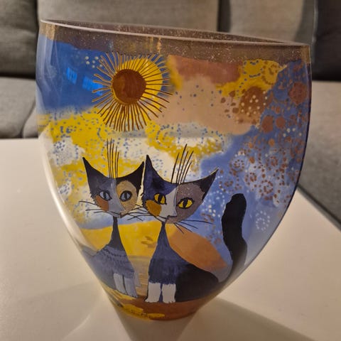 Vasen er i god stand, og fremstår som ny. Høyde 23 cm, diameter 16 cm.