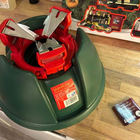 Juletrefoten passer til tre på max 220 cm og stammediameter 11 cm. Vannbeholderen rommer 3L. Holder treet friskt. Brukt to sesonger. Ikke bruk for den da vi har gått over til plast-tre:) Ny pris 599kr