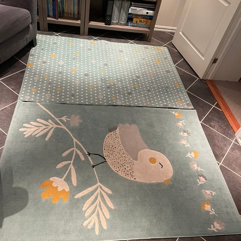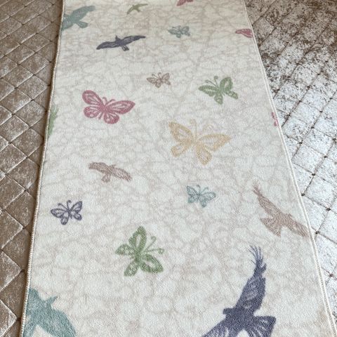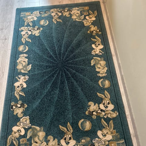 Fint teppe, noen flekker her og der etter bruk på barnerom.