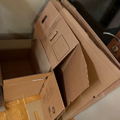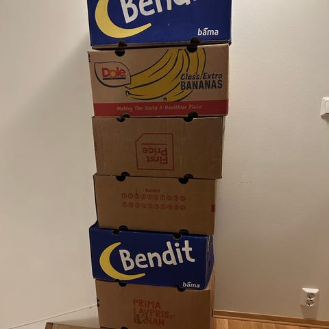 Ca. 20 Biltema flytteesker i størrelse large (75 L, 40 kg) gis bort. Brukt til flytting én gang.