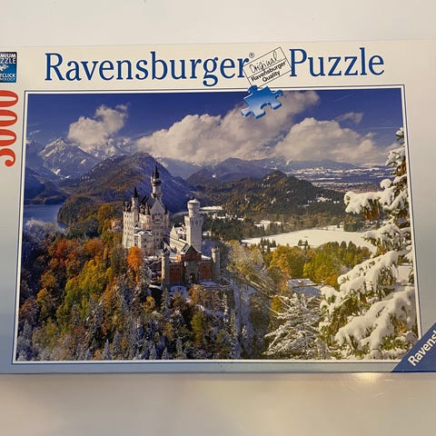 Ravensburger puslespill med 1000 brikker. Puslespillet har et detaljert motiv med mange farger og elementer.