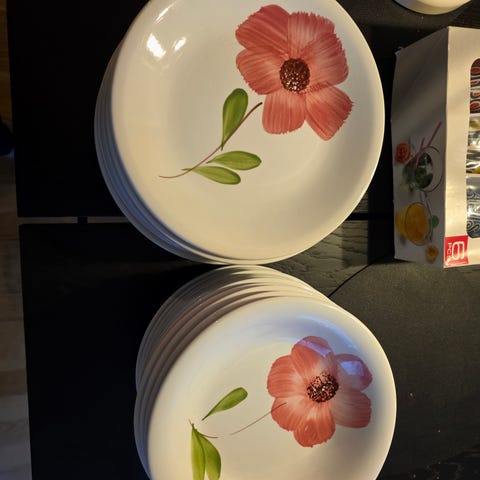 Selges samlet. 12 tallerkener med diameter 22 cm og 10 tallerkener med diameter 20 cm.