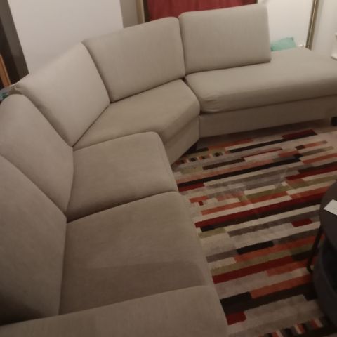 Blå / grå sofa i velur. Modulsofa. Kjøpt på O. Borgen for noen år siden. Ingen dyr, ingen røyk. Hentes i Sandefjord.