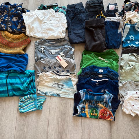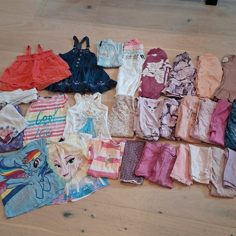Selger en stor/gigantisk klespakke i størrelse 104. Perfekt som barnehagepakke eller for deg som vil ha mye klær på én gang.