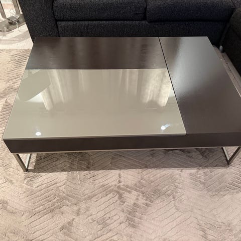 Salongbord lavt, som kan slås opp for spiseplasser selges. Bordet har også en kjekk lagerplass for fjernkontroller og.l.