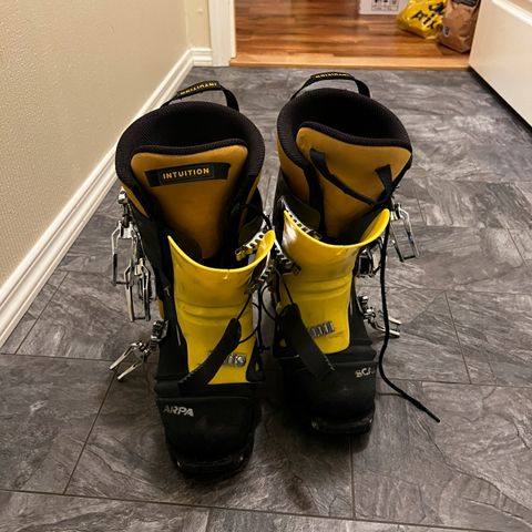 Scarpa TX 325 mm, mener det er størrelse 28. En reim som er slitt.